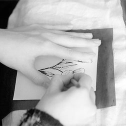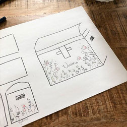 De tweede stap is het tekenen van jouw ontwerp op de kist of het stoeltje. Dit doe ik meestal uit de hand en als ik wil dat de verhoudingen precies kloppen gebruik ik carbonpapier.