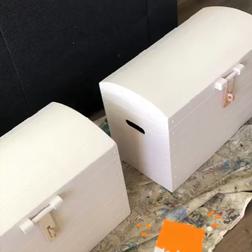 De kisten en stoeltjes zijn vaak kaal als ik ze binnenkrijg. En wat ik ook schilder, ik zorg er altijd eerst voor dat ik de kisten en stoeltjes eerst schilder met grondverf en schilder met lakverf. Zo weet ik zeker dat de kisten en stoeltjes lang meegaan!